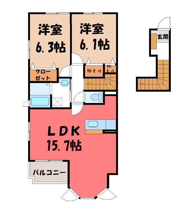 栃木県真岡市熊倉町【真岡鐵道 真岡駅徒歩23分】にある2LDK賃貸アパートです。