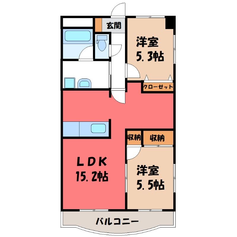 築年月 2002年2月  間取り 2LDK( LDK15.2畳/洋室5.3畳(*階)/洋室5.5畳(*階) ) 専有面積 57.18m2