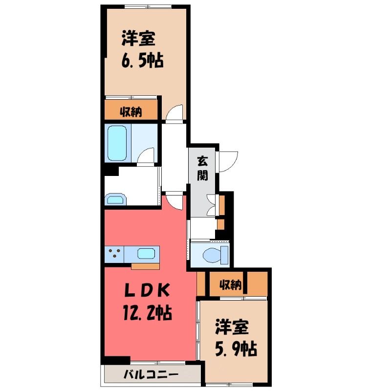 築年月 2026年  間取り 2LDK( LDK12.2畳/洋室6.5畳(*階)/洋室5.9畳(*階) ) 専有面積 60.17m2