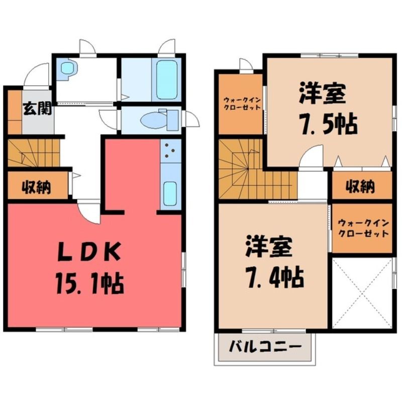 コートパルモ・NT B(9.8万円)栃木県宇都宮市陽東8丁目の2LDK賃貸テラスハウス