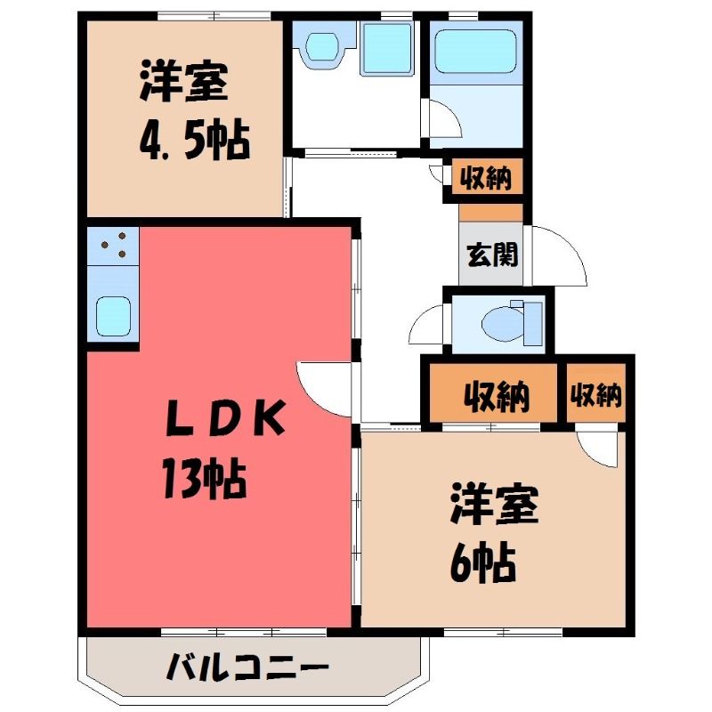 ロワールレジデンス III(4.9万円)栃木県宇都宮市宝木町2丁目の2LDK賃貸マンション