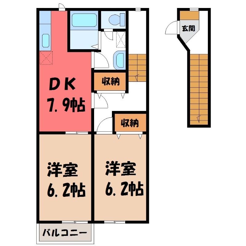 プリムローズ 真岡の2DK賃貸アパート