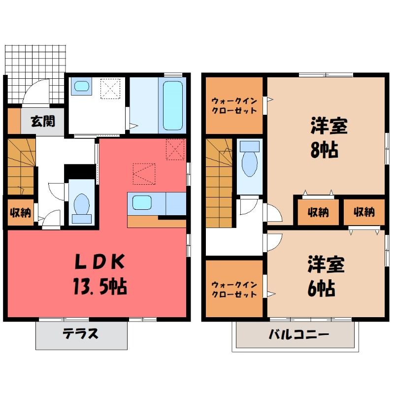ウィルコート厚木(8.5万円)栃木県宇都宮市鶴田町の2LDK賃貸テラスハウス