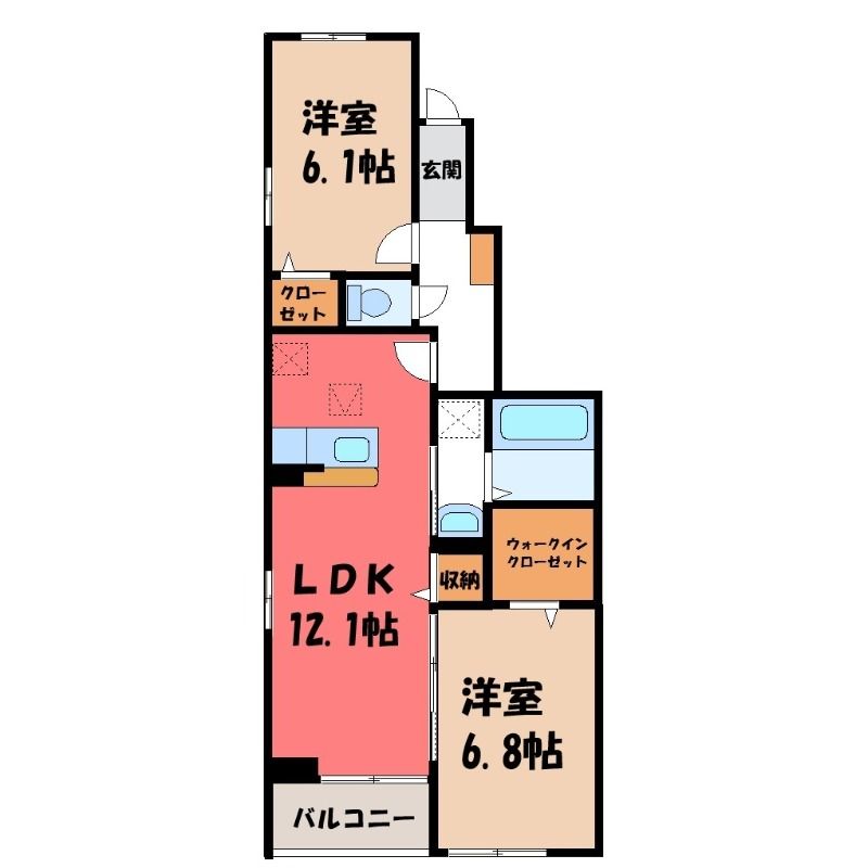 築年月 新築  間取り 2LDK( LDK12.1畳/洋室6.8畳(*階)/洋室6.1畳(*階) ) 専有面積 58.35m2