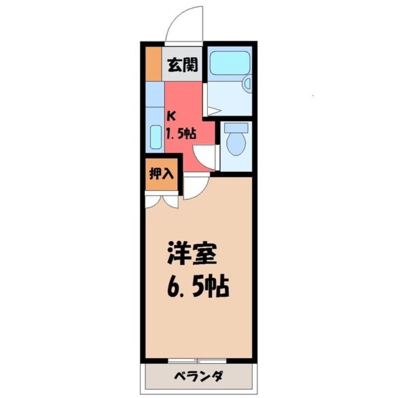 築年月 1993年3月  間取り 1K( K1.5畳/洋室6.5畳(*階) ) 専有面積 23.47m2