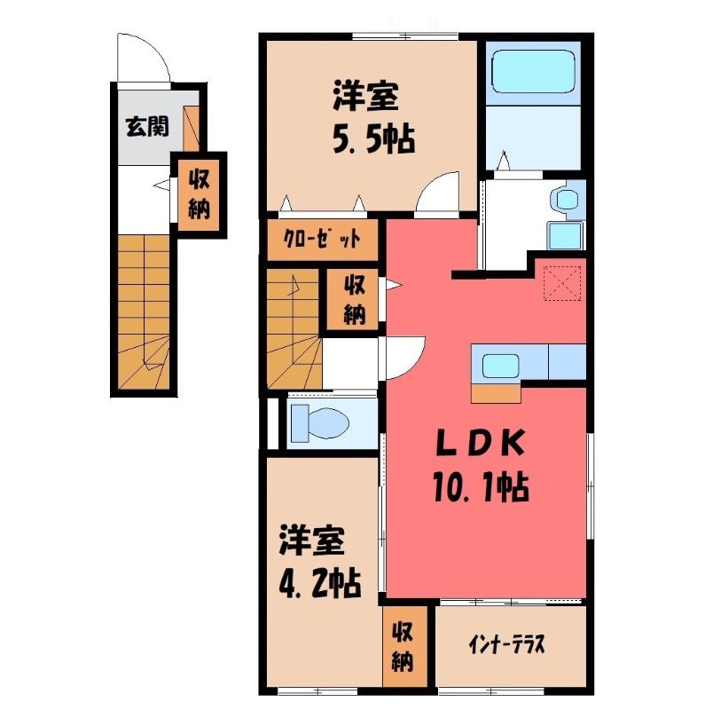 築年月 新築  間取り 2LDK( LDK10.1畳/洋室5.5畳(*階)/洋室4.2畳(*階) ) 専有面積 55.54m2