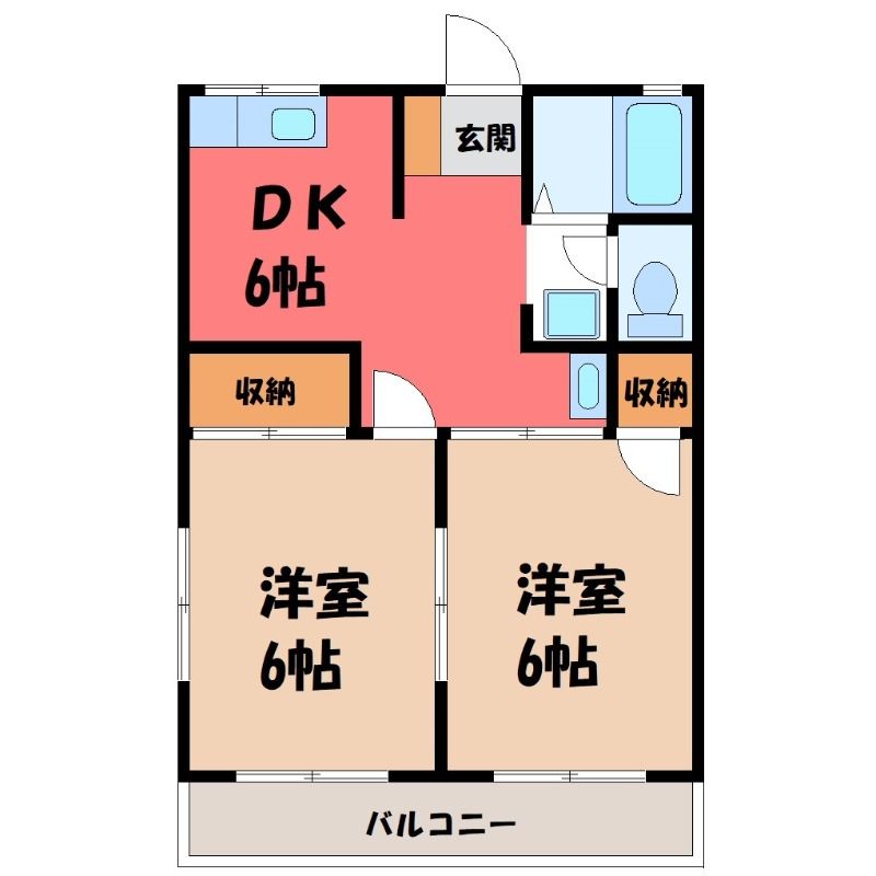 栃木県宇都宮市東岡本町【JR烏山線 岡本駅徒歩15分】にある2DK賃貸アパートです。