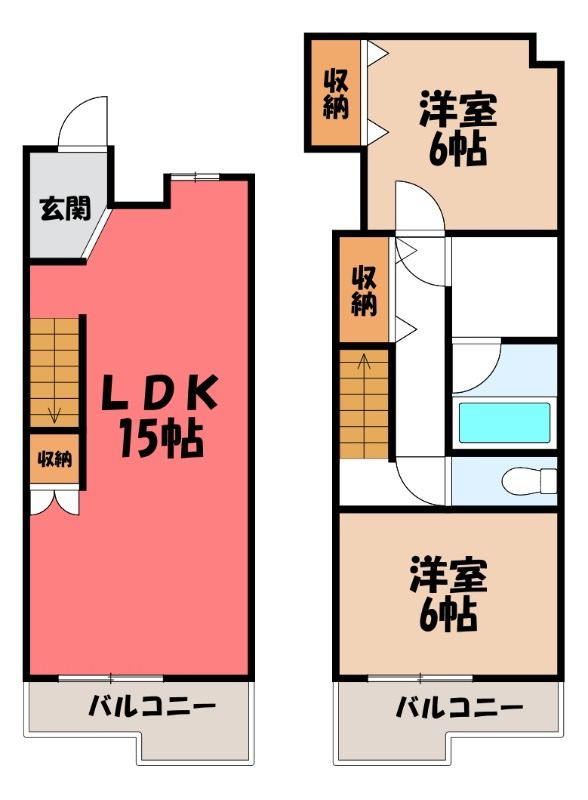 築年月 1985年12月  間取り 2LDK( LDK15畳/洋室6畳(*階)/洋室6畳(*階) ) 専有面積 68.79m2