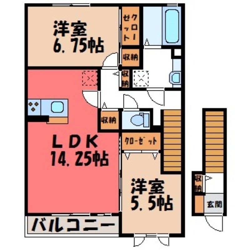 ヴェルドミール(8.1万円)栃木県下野市小金井3丁目の2LDK賃貸アパート