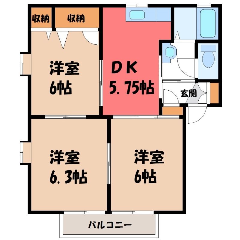 メゾンド・黒川 B 宇都宮の3DK賃貸アパート