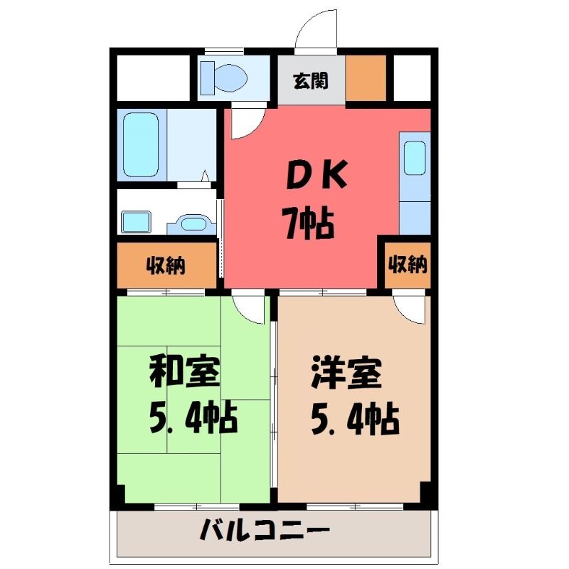栃木県宇都宮市錦2丁目【JR東北本線 宇都宮駅宇商高校前 バス乗車時間7分  停歩7分】にある2DK賃貸マンションです。