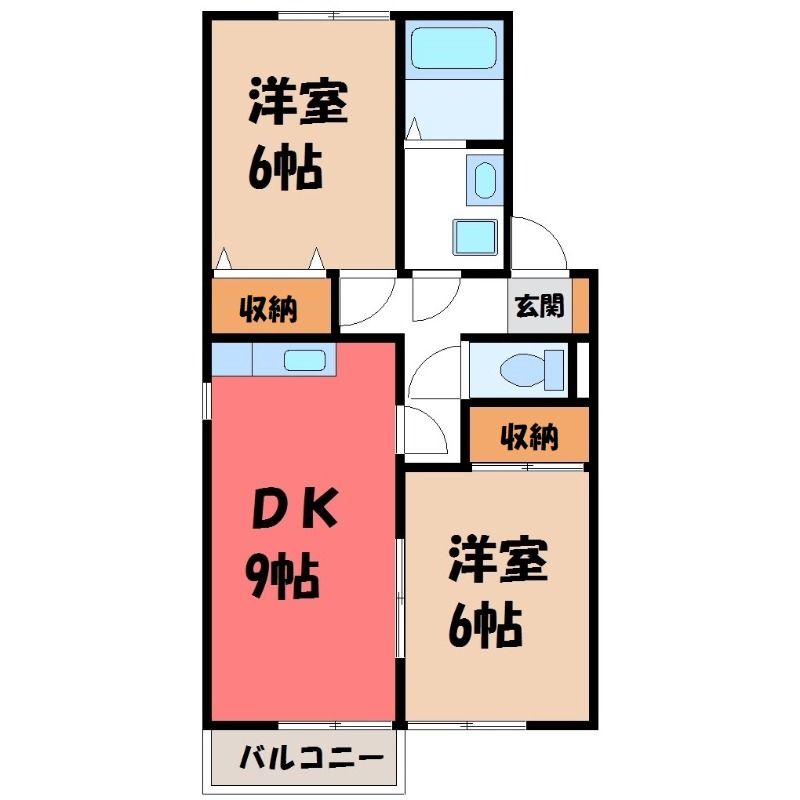 栃木県宇都宮市駒生町【東武宇都宮線 東武宇都宮駅徒歩59分】にある2LDK賃貸アパートです。