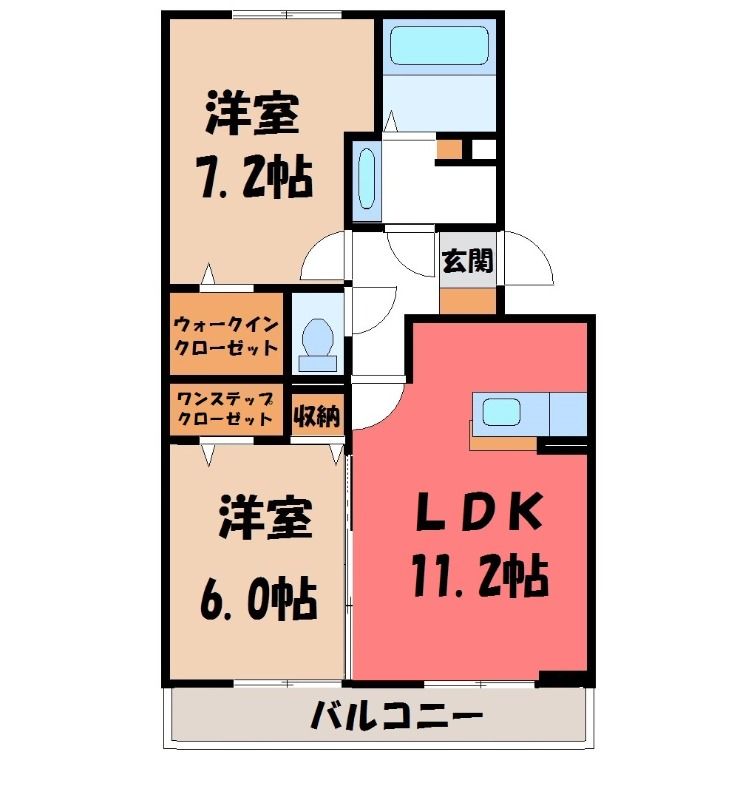 築年月 2018年7月  間取り 2LDK( LDK11.2畳/洋室7.2畳(*階)/洋室6畳(*階) ) 専有面積 58.2m2