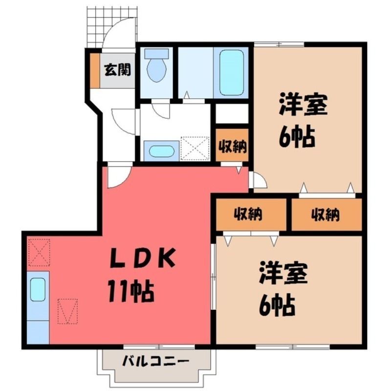 エクセールKI A(4.3万円)栃木県宇都宮市城南1丁目の2LDK賃貸アパート