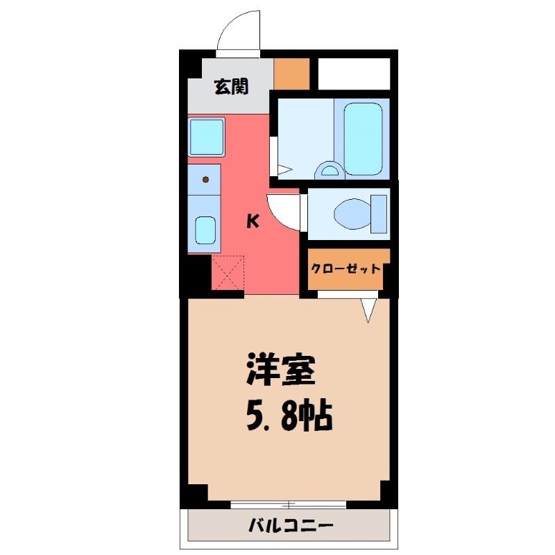 築年月 1994年4月  間取り 1K( 洋室5.8畳(*階) ) 専有面積 20.28m2