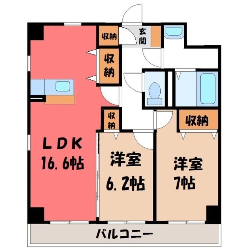 アマルフィーノグラン(10.4万円)栃木県宇都宮市越戸2丁目の2LDK賃貸マンション