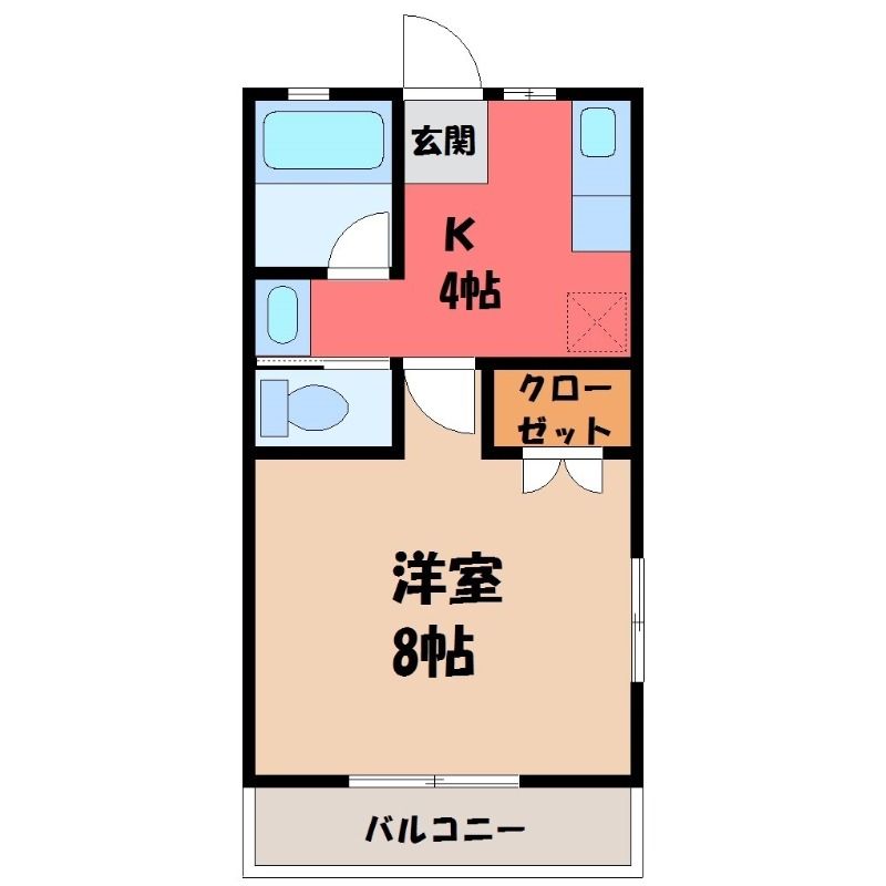 築年月 1994年4月  間取り 1K( K4畳/洋室8畳(*階) ) 専有面積 26.5m2