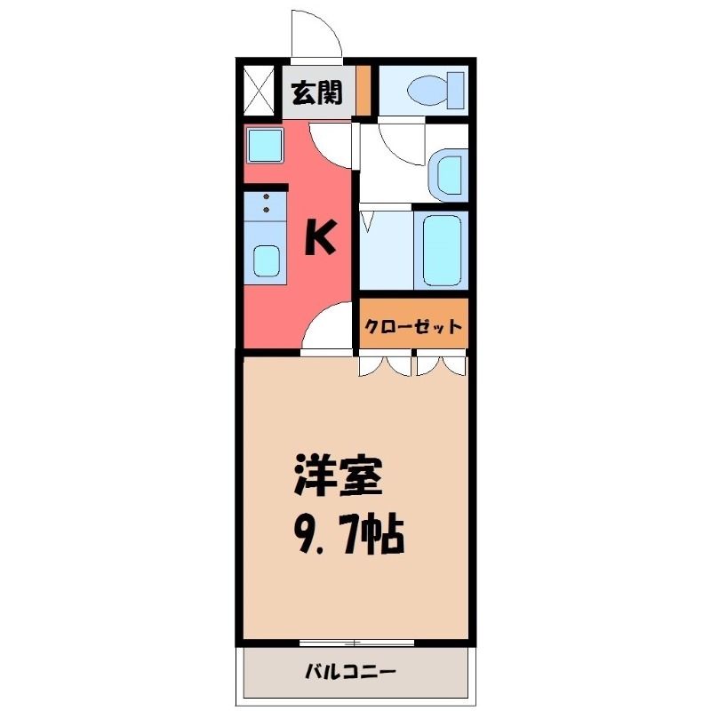 物件の広さは29.75m2で人気の1Kです。