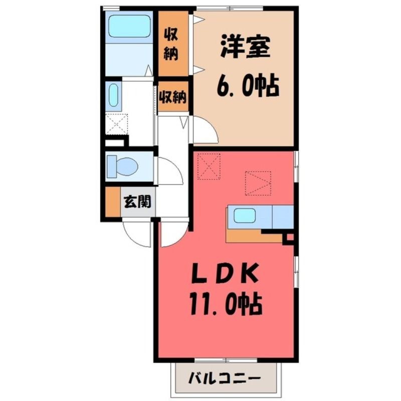 ヴェルデ・ナチュール A(4.5万円)栃木県宇都宮市駒生町の1LDK賃貸アパート