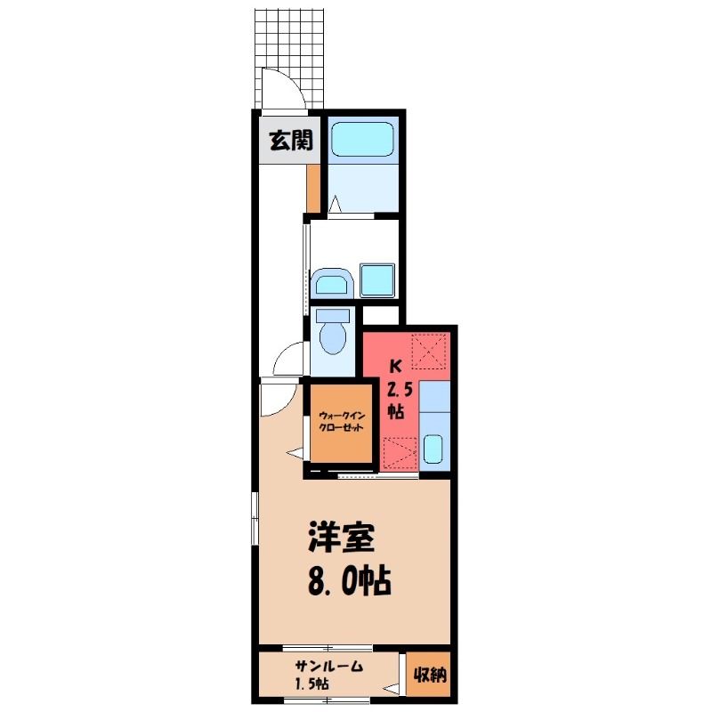 栃木県宇都宮市末広2丁目【JR東北本線 雀宮駅徒歩25分】にある1K賃貸アパートです。