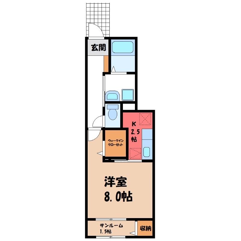 栃木県宇都宮市末広2丁目【JR東北本線 雀宮駅徒歩25分】にある1K賃貸アパートです。