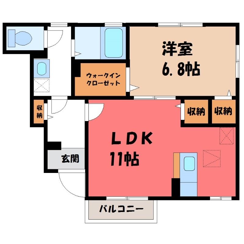 コトー・ルシエル A(6万円)栃木県宇都宮市石井町の1LDK賃貸アパート