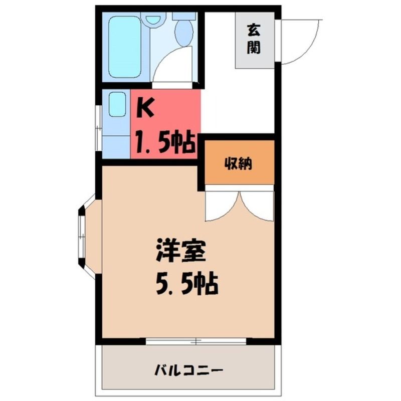 築年月 1991年4月  間取り 1K( K1.5畳/洋室5.5畳(*階) ) 専有面積 24.57m2
