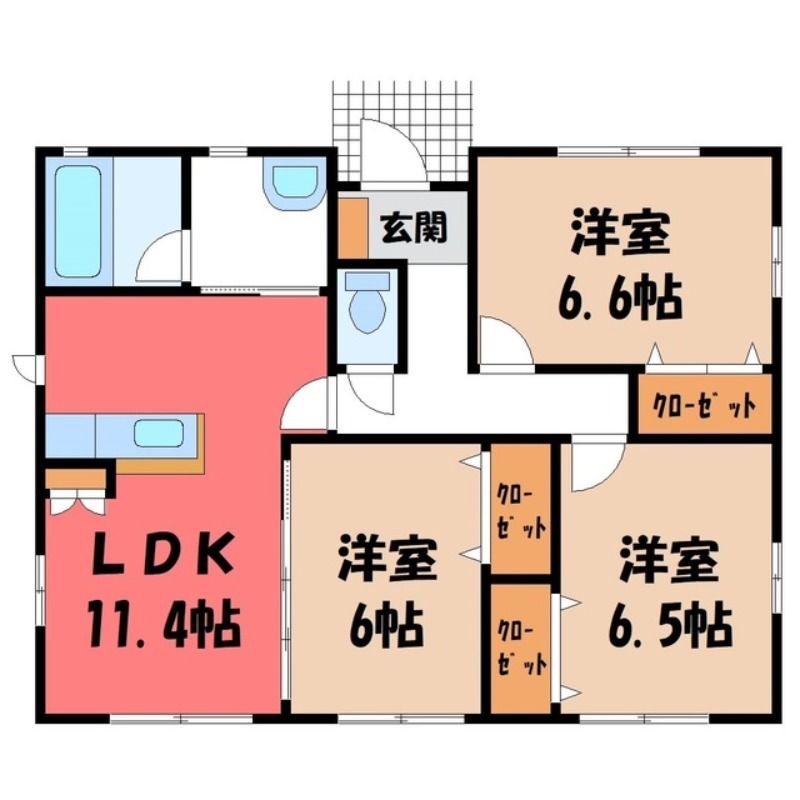 リベルテ フォレスト C(8.8万円)栃木県真岡市勝瓜の3LDK賃貸一戸建て