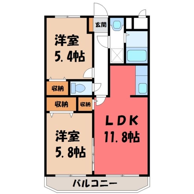 築年月 2014年9月  間取り 2LDK( LDK11.8畳/洋室5.8畳(*階)/洋室5.4畳(*階) ) 専有面積 53.98m2