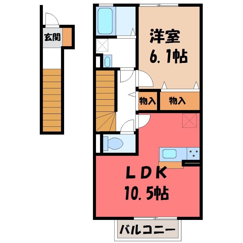 リェス ソーンツェ A 鹿沼の1LDK賃貸アパート