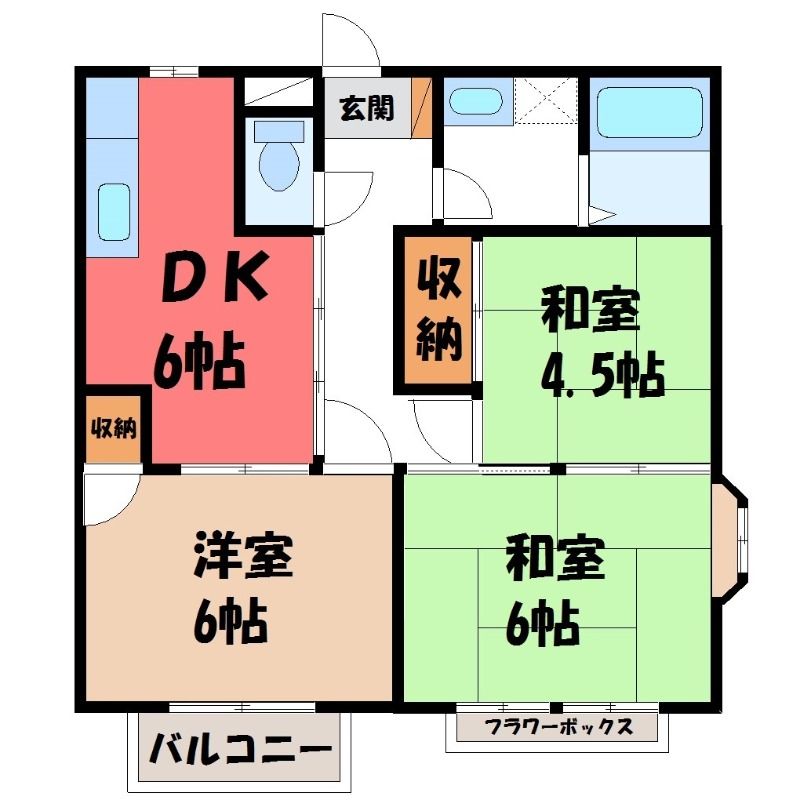 栃木県真岡市熊倉2丁目【真岡鐵道 真岡駅徒歩20分】にある3DK賃貸アパートです。