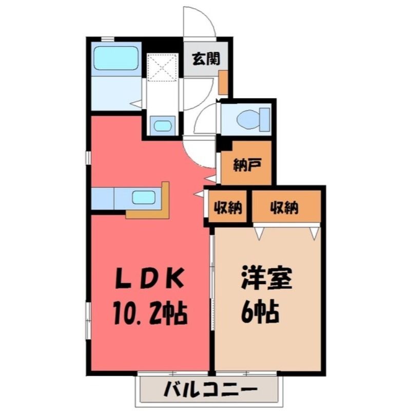 サン・リュミエール E棟(7万円)栃木県宇都宮市ゆいの杜7丁目の1LDK賃貸アパート