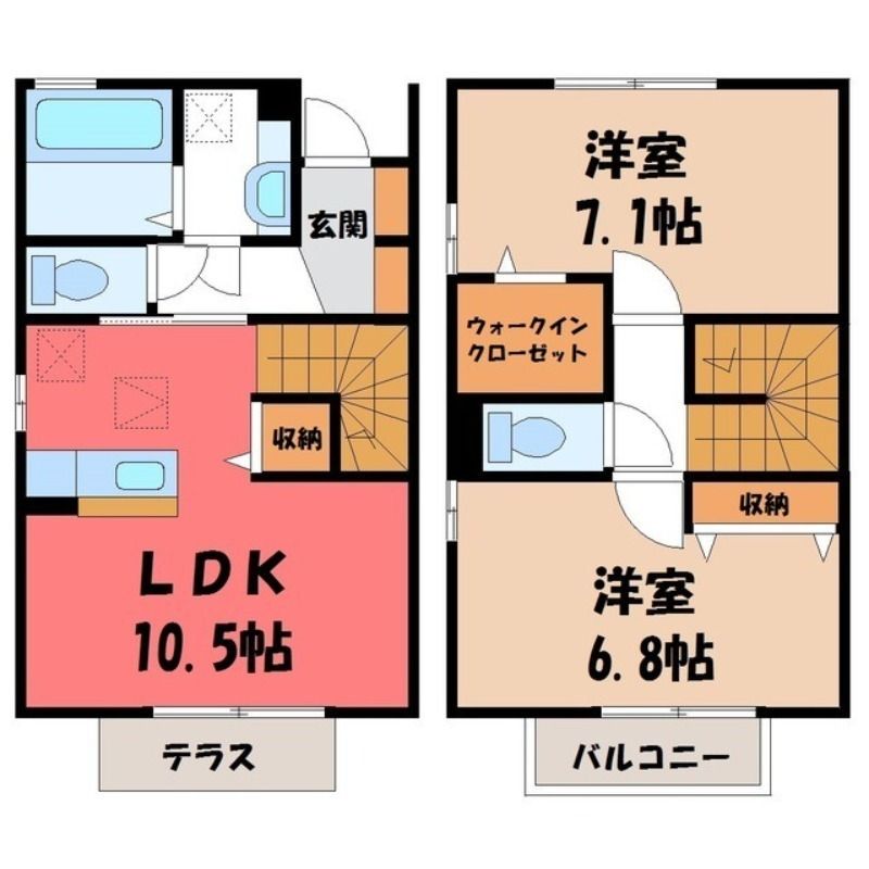 フローラルコート G(8.9万円)栃木県宇都宮市西川田町の2LDK賃貸テラスハウス