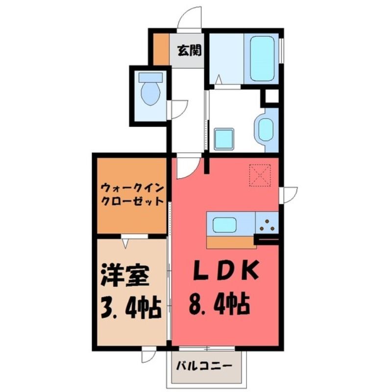プログレ A(7.4万円)栃木県宇都宮市ゆいの杜6丁目の1LDK賃貸アパート