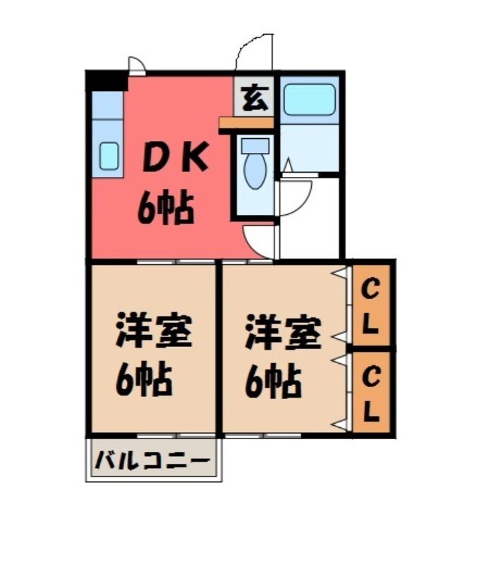築年月 1999年3月  間取り 2DK( DK6畳/洋室6畳(*階)/洋室6畳(*階) ) 専有面積 44.97m2