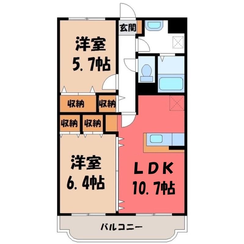 栃木県塩谷郡高根沢町大字宝積寺【JR東北本線 宝積寺駅徒歩9分】にある2LDK賃貸マンションです。