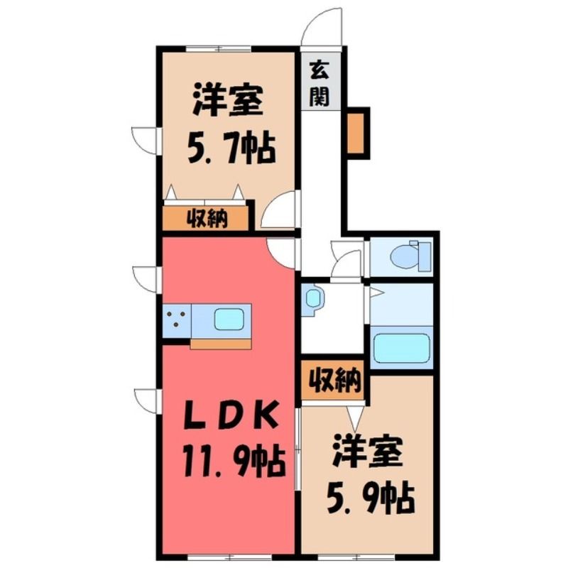 Vita Seed I(7.9万円)栃木県宇都宮市若松原3丁目の2LDK賃貸アパート