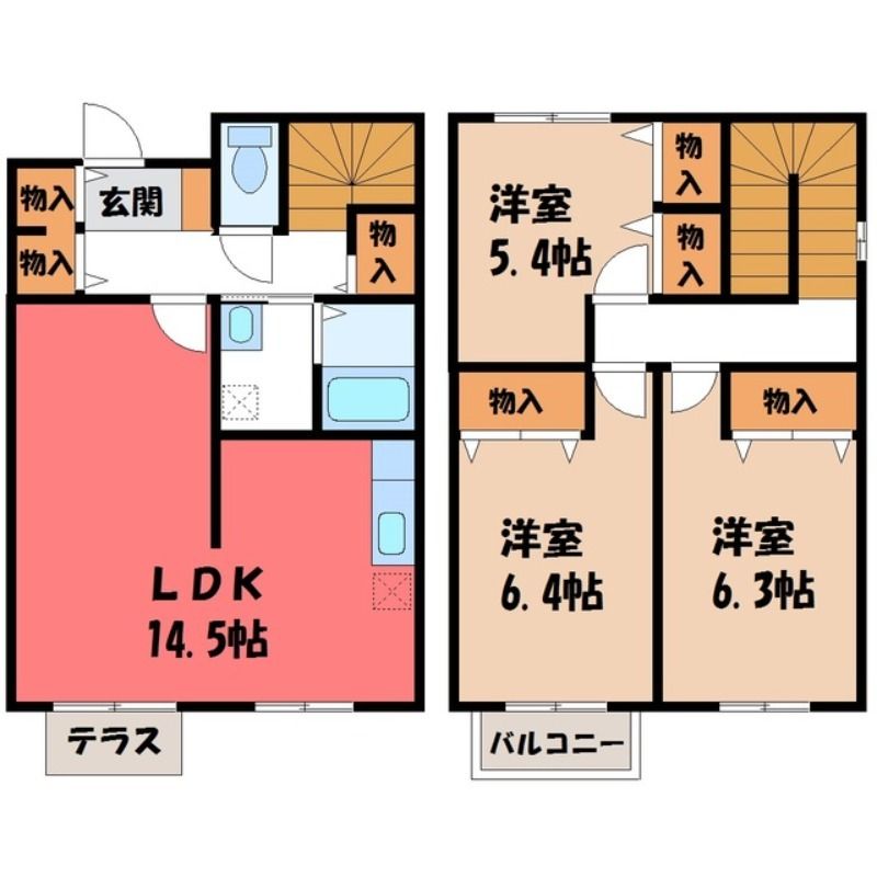 フレックス城東(10万円)栃木県宇都宮市城東2丁目の3LDK賃貸テラスハウス