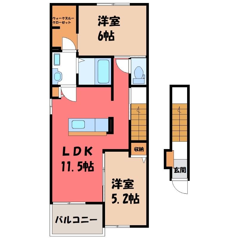 築年月 2020年2月  間取り 2LDK( LDK11.5畳/洋室6畳(*階)/洋室5.2畳(*階) ) 専有面積 56.81m2