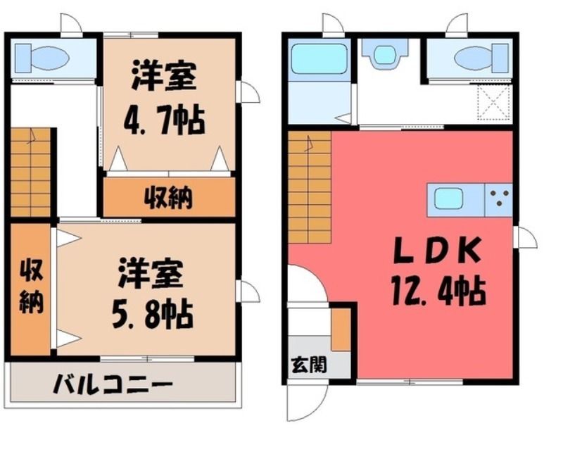 物件の広さは57.75m2で人気の2LDKです。