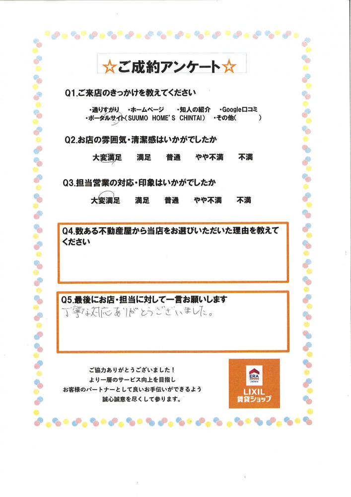 丁寧な対応ありがとうございました。