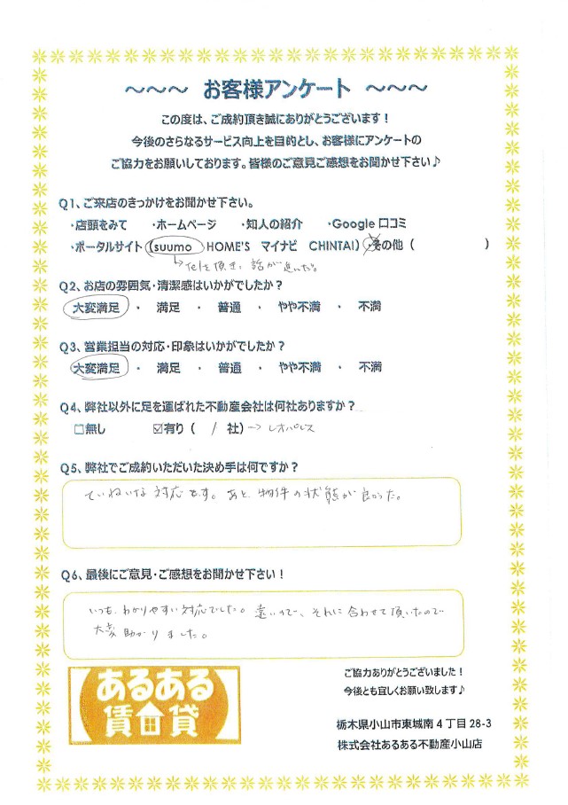 この度は数ある不動産会社の中から弊社にご来店頂きまして誠にありがとうございました。