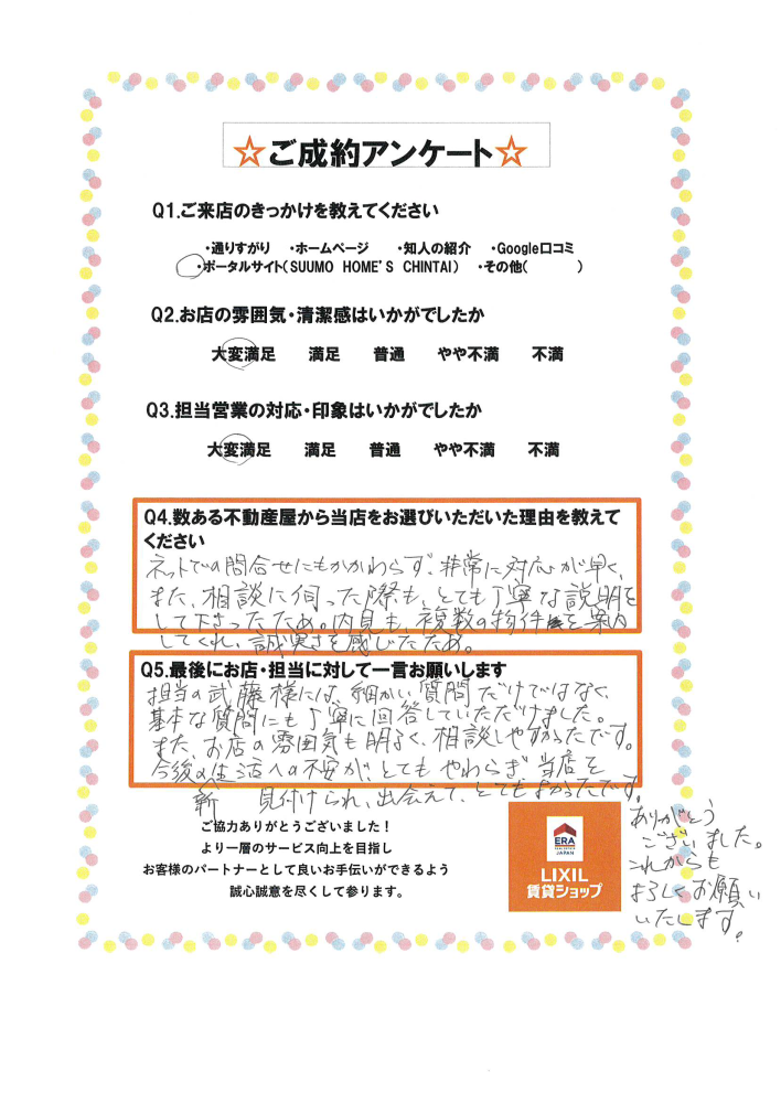 この度は、あるある不動産東店をご利用頂きありがとうございました!