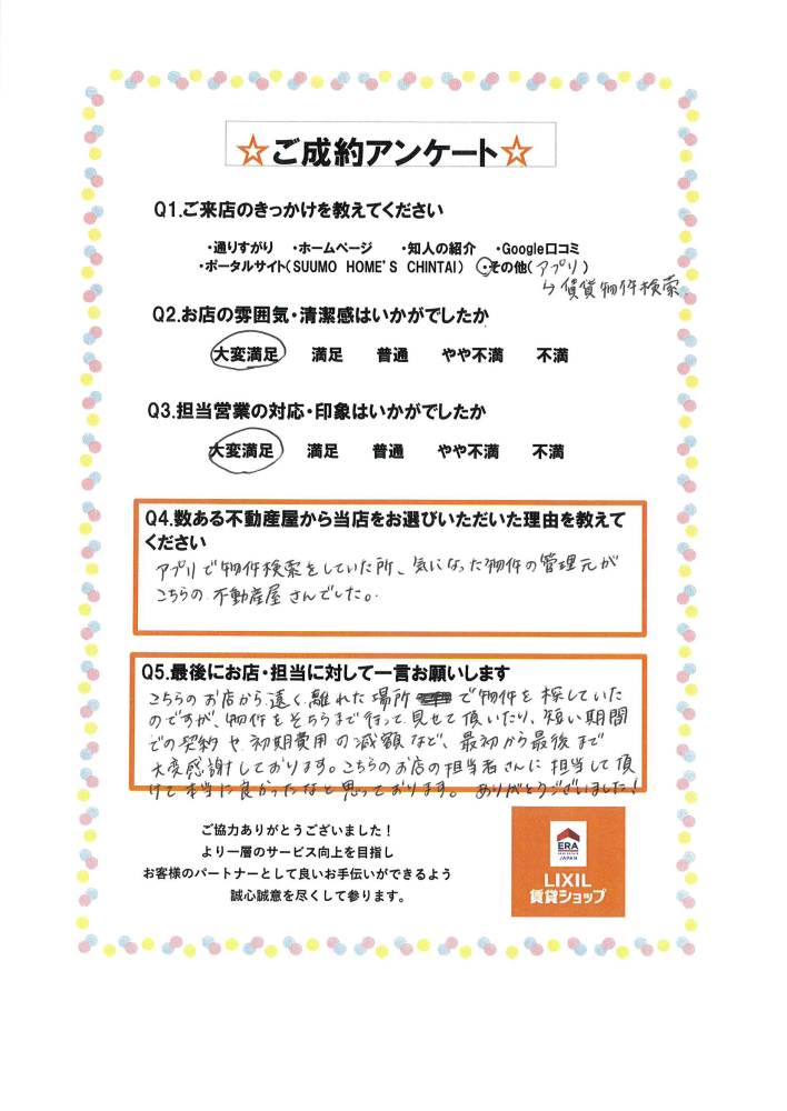 この度はあるある不動産をご利用いただきありがとうございました。