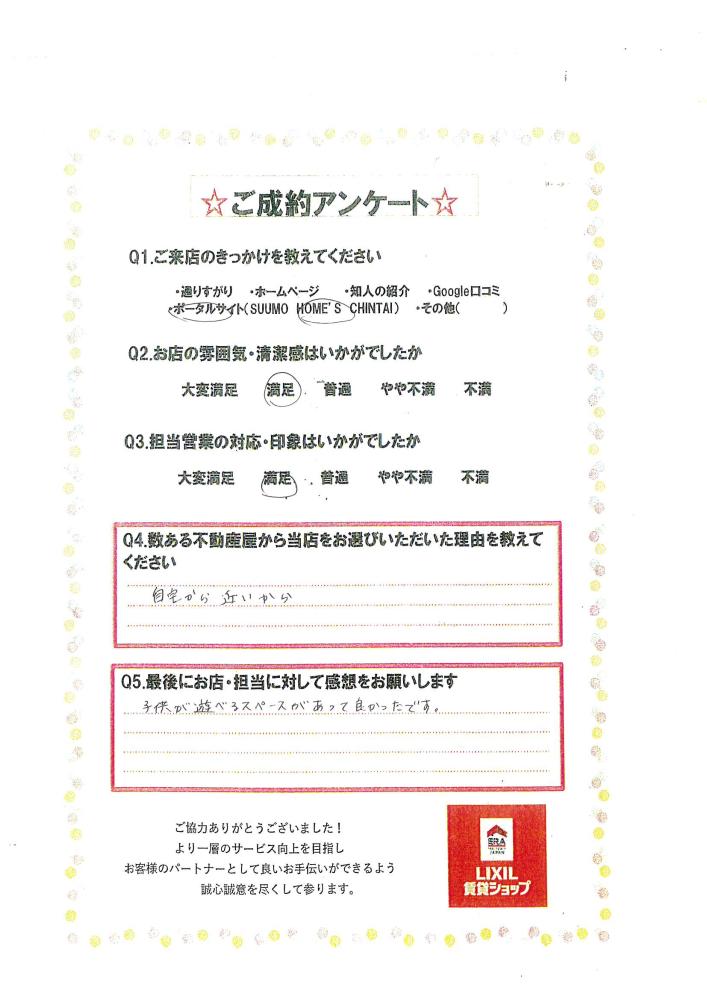 この度は当店にて、ご契約を頂きまして、ありがとうございます! 新生活のお部屋を一緒に探させて頂きまして、ありがとうございます。 ご入居まで、引き続き、サポートさせて頂きますので、宜しくお願い致します。