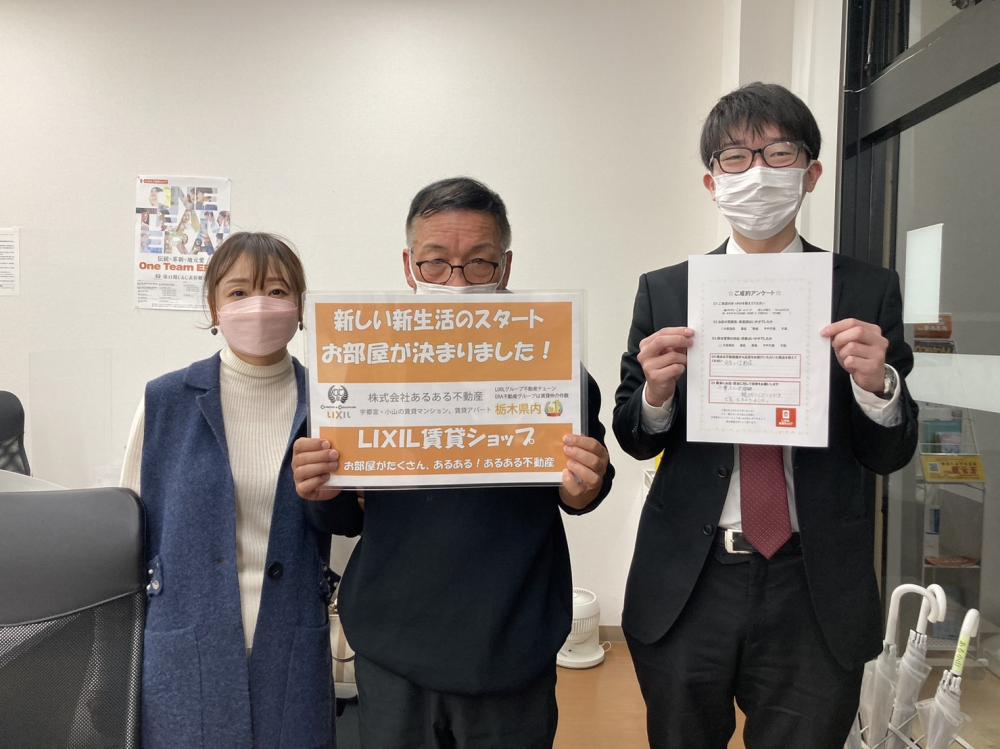 この度は数ある不動産会社の中からあるある不動産小山店をご利用頂きありがとうございます。 お客様にぴったりのお部屋をご紹介することができて大変嬉しく思います! また新しいお部屋での生活が始まりご不安な事がでてくるかと思いますが お気軽にご連絡ください!! 素敵なお部屋での新生活を楽しんでいただけると幸いです!!