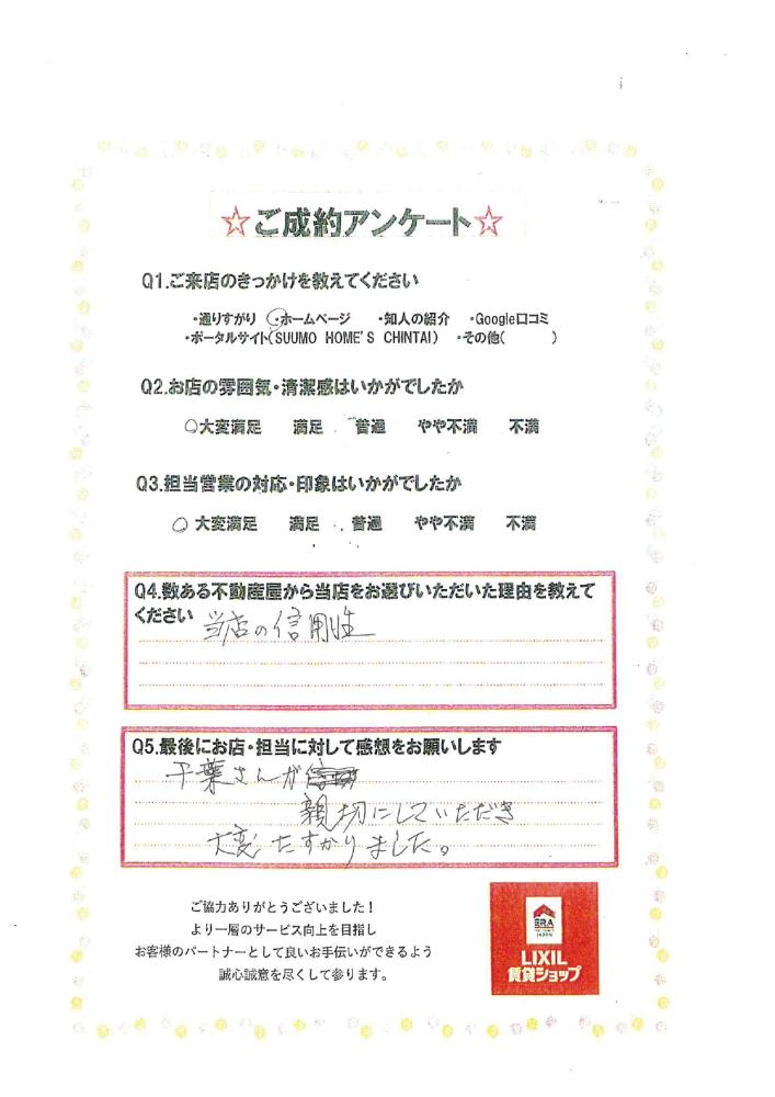 千葉さんに親切にしていただき大変助かりました。(茨城県在住 I様)