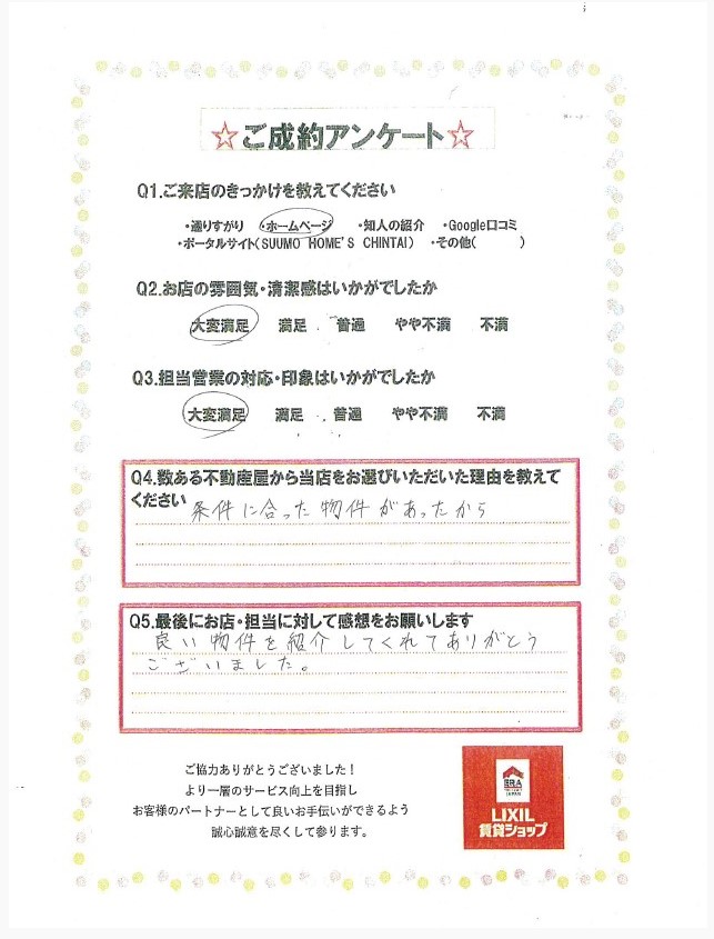 良い物件を紹介してくれてありがとうございました。(福島県在住 K様)