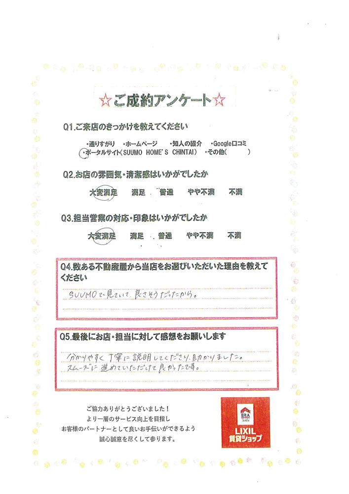 分かりやすく丁寧に説明をして下さり助かりました。スムーズに進めていただけて良かったです。