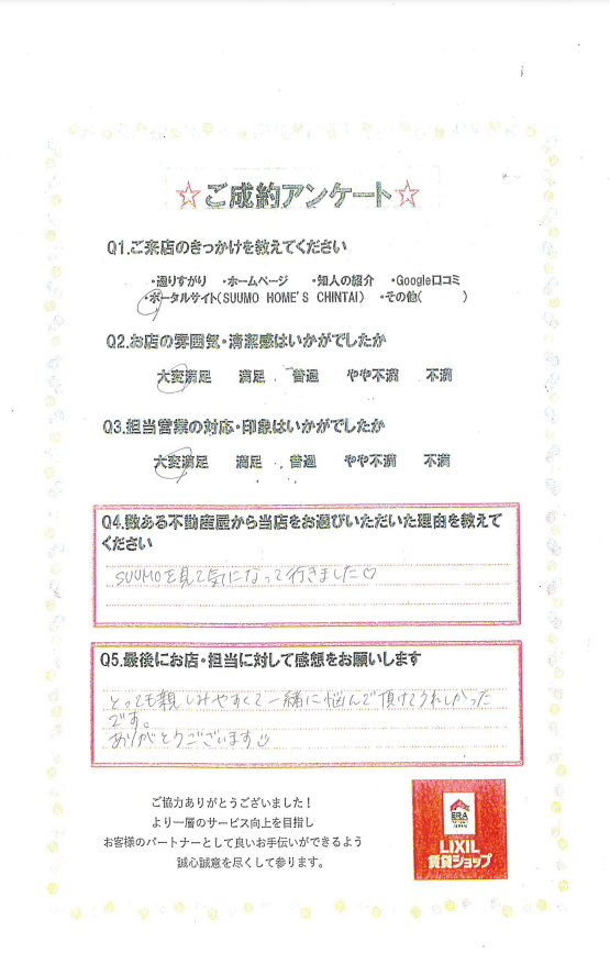 お二人の大切なお部屋探しをお手伝いできたこと、大変嬉しく思っております。